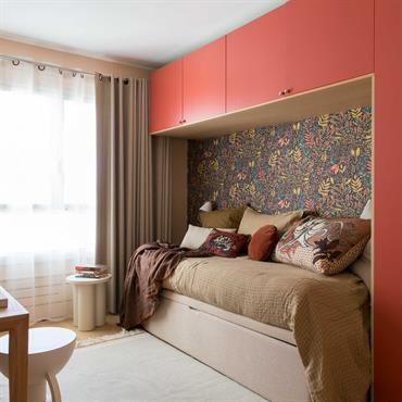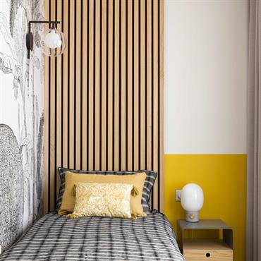 Pour une chambre d’ado, les lits mezzanines structurent la chambre de manière conviviale et permettent de dégager un espace bureau bien pratique. Ne négligez pas les étagères et les bibliothèques : les livres et les trophées s’accumulent vite ! Pour les chambres partagées entre plusieurs enfants, les blocs étagères faisant office de petites cloisons séparatrices sont bien pratiques pour délimiter le territoire et créer de l’intimité.