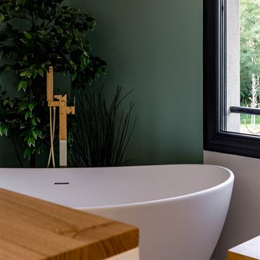 La couleur taupe pourra être facilement associée au vert bambou ou au vert anis pour créer une salle de bain zen et apaisante. Pour cela, optez pour de petits carreaux taupe foncé pour décorer vos murs, d'un mobilier en bois naturel comme le pin ou le chêne et apportez des touches de vert avec vos éléments déco et pourquoi pas quelques petites plantes vertes.