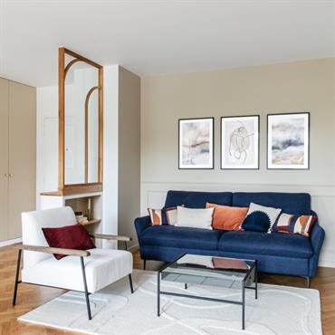 Méridienne pour canapé modulable MEGEVE tissu texturé beige angle droit BOBOCHIC 1 places